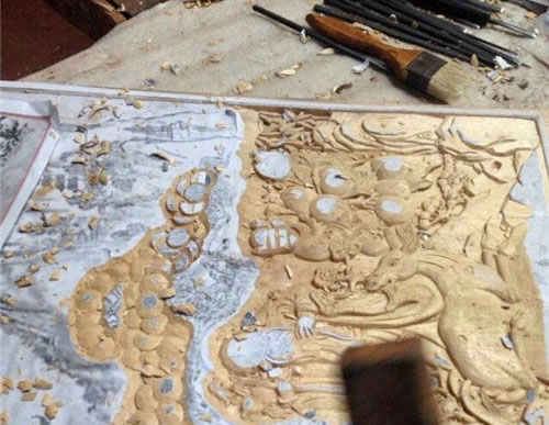 2、用打坯刀和錘子把圖案的基本輪廓打出來(lái),也***是行業(yè)中所說(shuō)的“打頭”,打頭時(shí)要根據(jù)圖案的線條粗細(xì)采用不同型號(hào)的打坯刀。